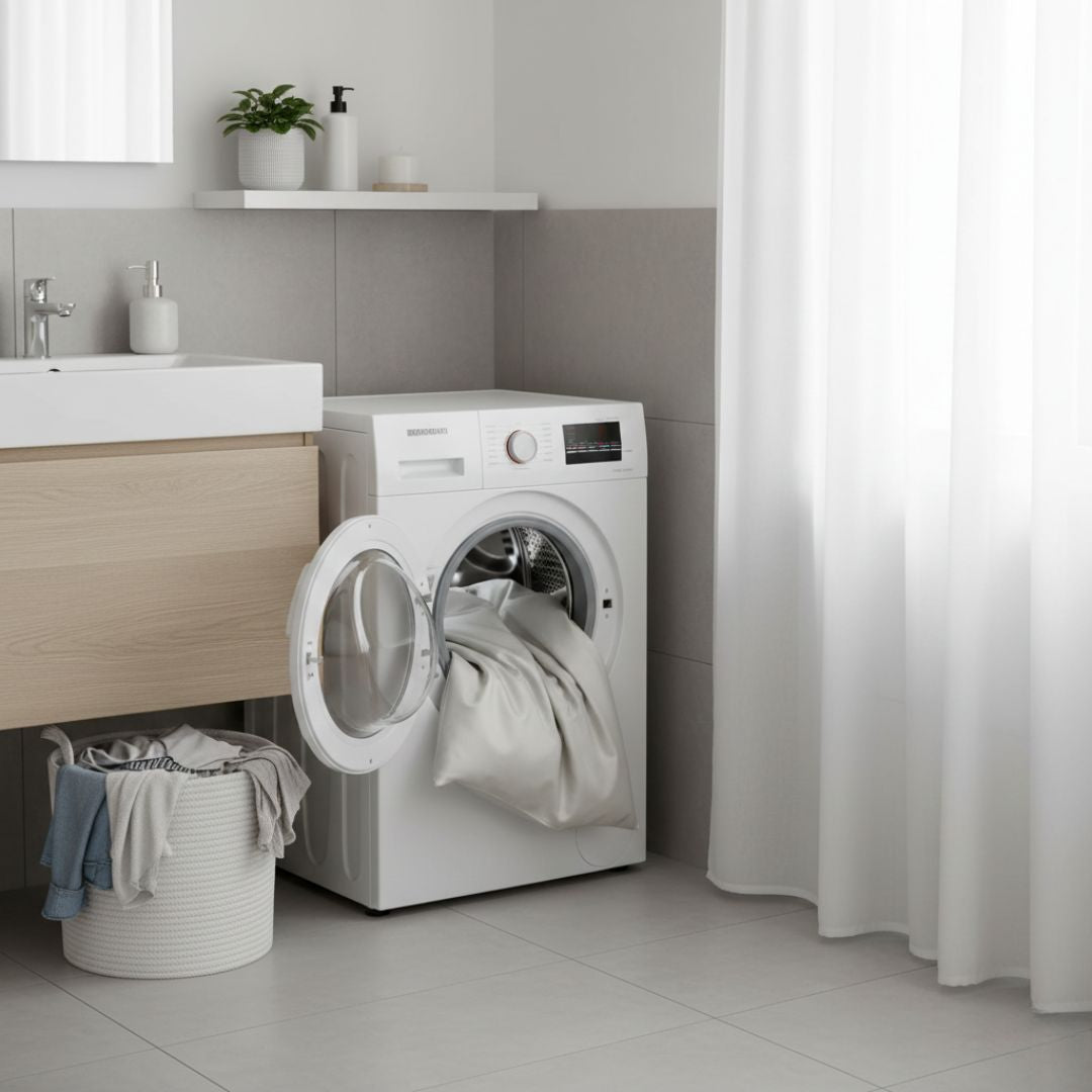 Waschen Sie Bettwäsche auf links, mit Buntwaschmittel, bei 90°C und getrennt von anderen Textilien.