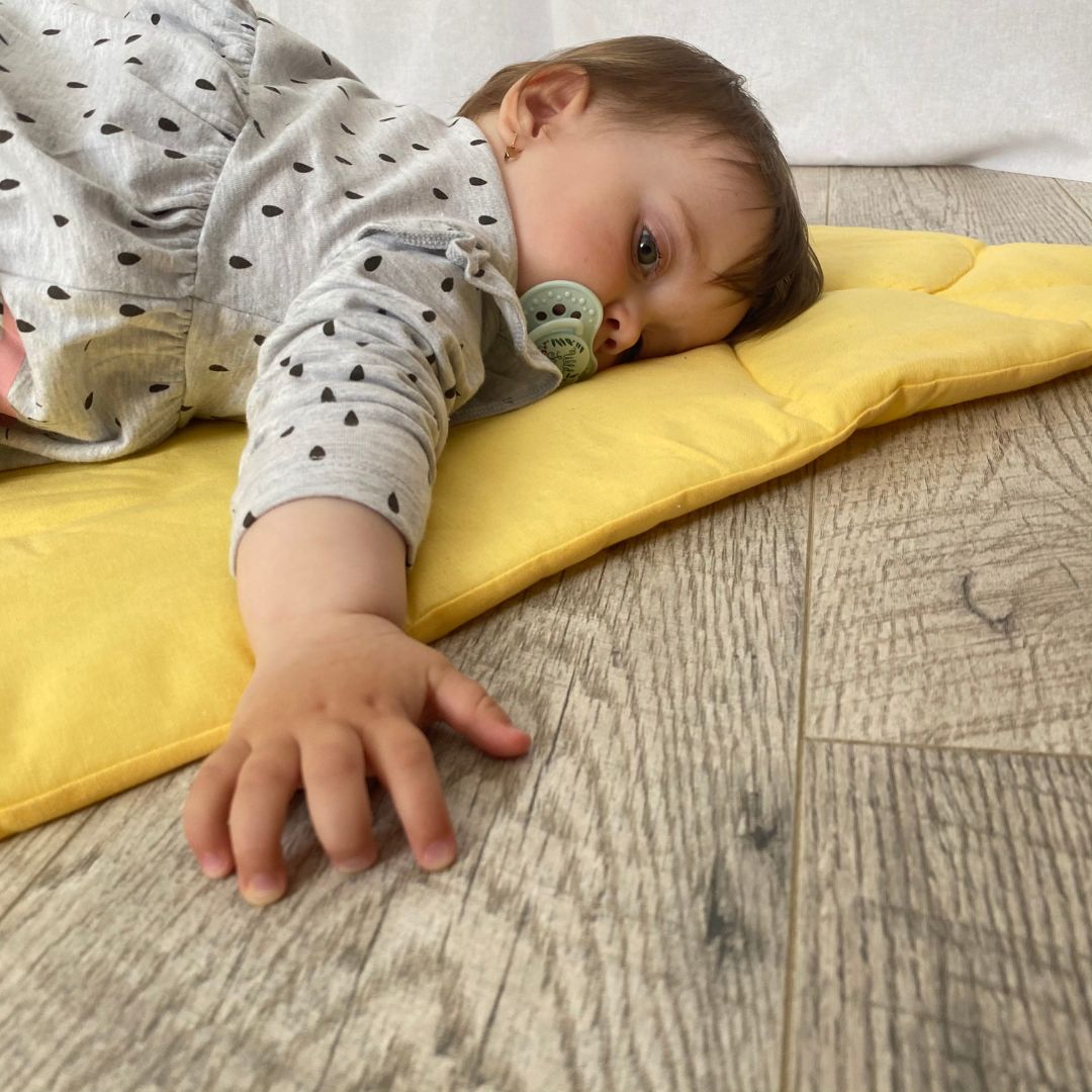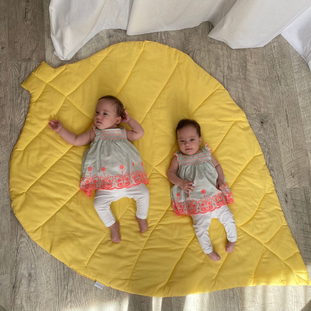 Die einzigartige, im Inland entworfene und hergestellte, moderne Spielmatte mit Holzblättern von Henima Design sorgt für ein angenehmes Tragegefühl. Das Produkt besteht aus 100 % Baumwolle, die die Körpertemperatur reguliert und für hervorragende Belüftung sorgt. Sie ist äußerst praktisch: Kinder können gut darauf spielen und wenn sie müde werden, können sie die Matte einfach über sich ausbreiten, sodass sie gleichzeitig als Decke dient.
