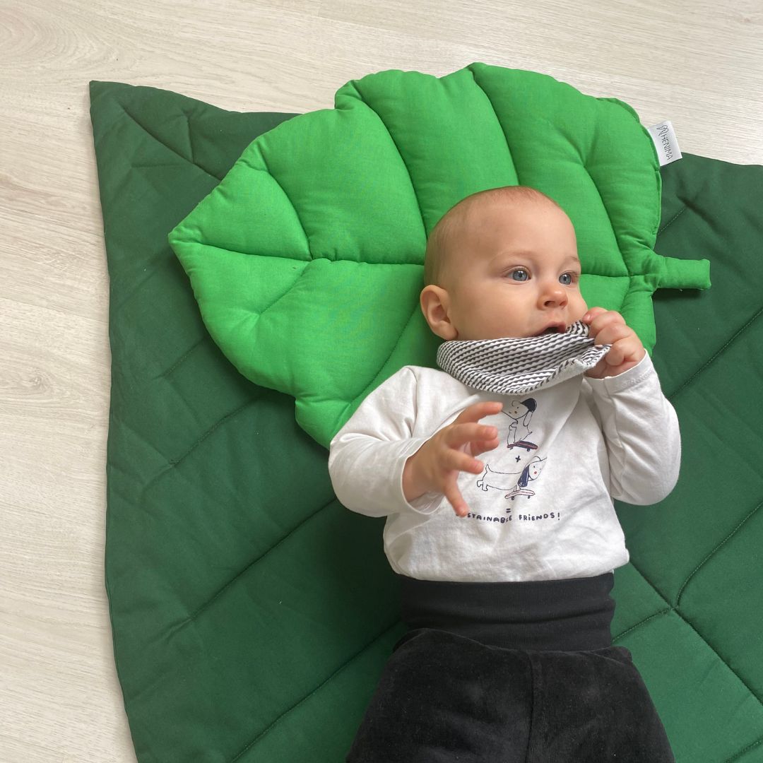The unique, domestically designed and manufactured, modern wood leaf play mat, designed by Henima design, provides a truly comfortable feeling. The product is made of 100% cotton, which helps regulate body temperature and provides excellent ventilation. It is truly practical, children can play well on it, and when they get tired, they can just spread it over themselves, thus fulfilling the function of a blanket.