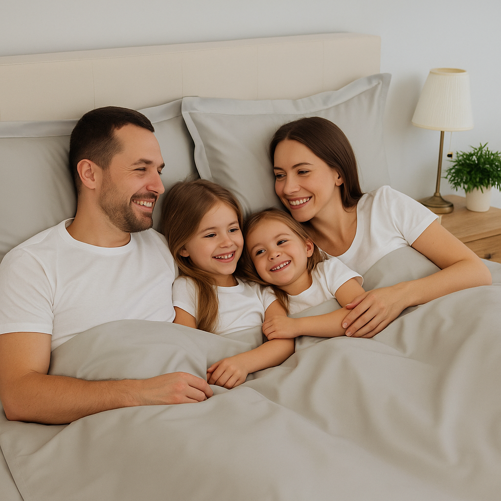 Dupla pamutszatén ágyneműhuzat garnitúra angol széllel - 5 db-os - Halvány szürke - TC 250