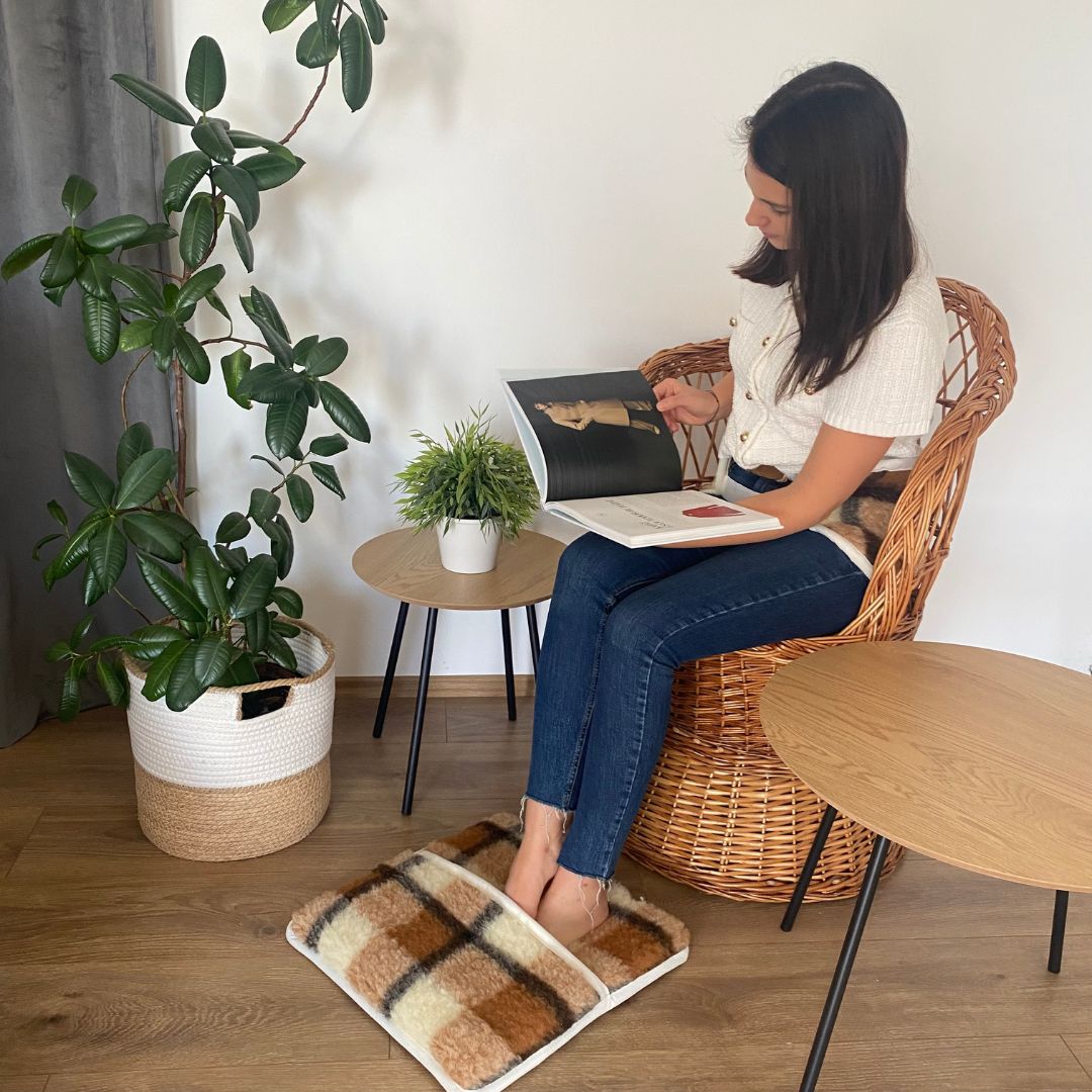 Gyapjú barna kockás lábmelegítő és vesemelegítő - szett