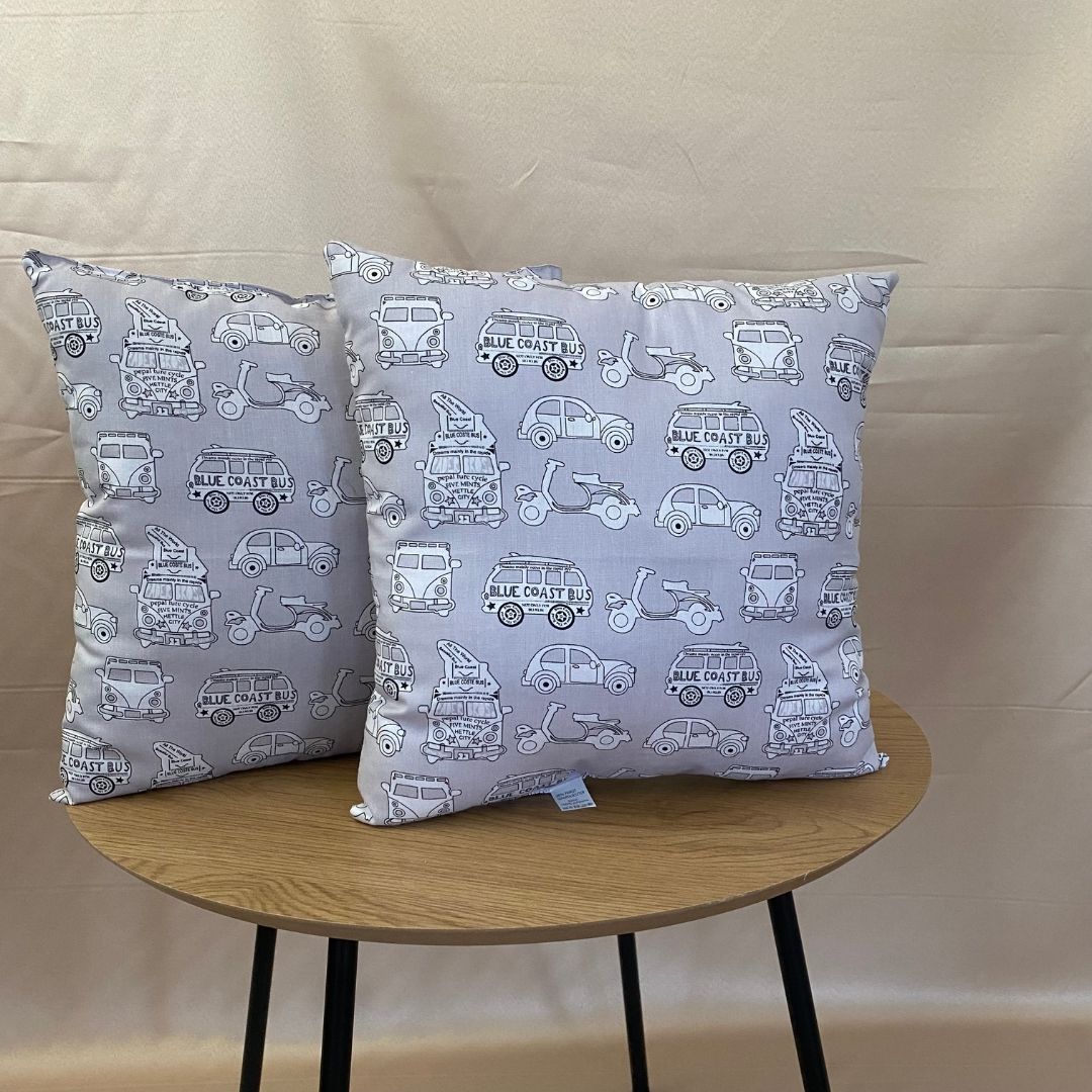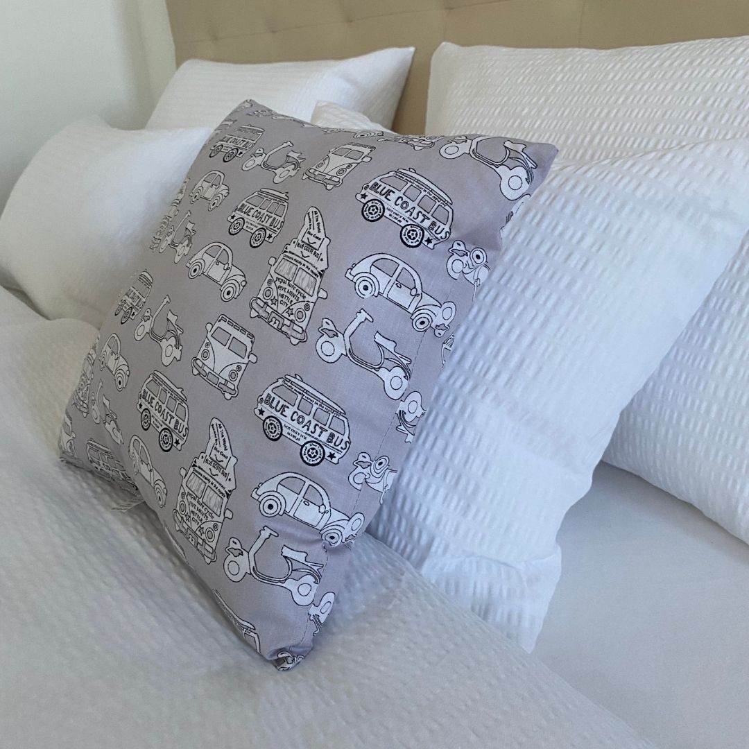 Szürke autós kispárna - 40x40 cm