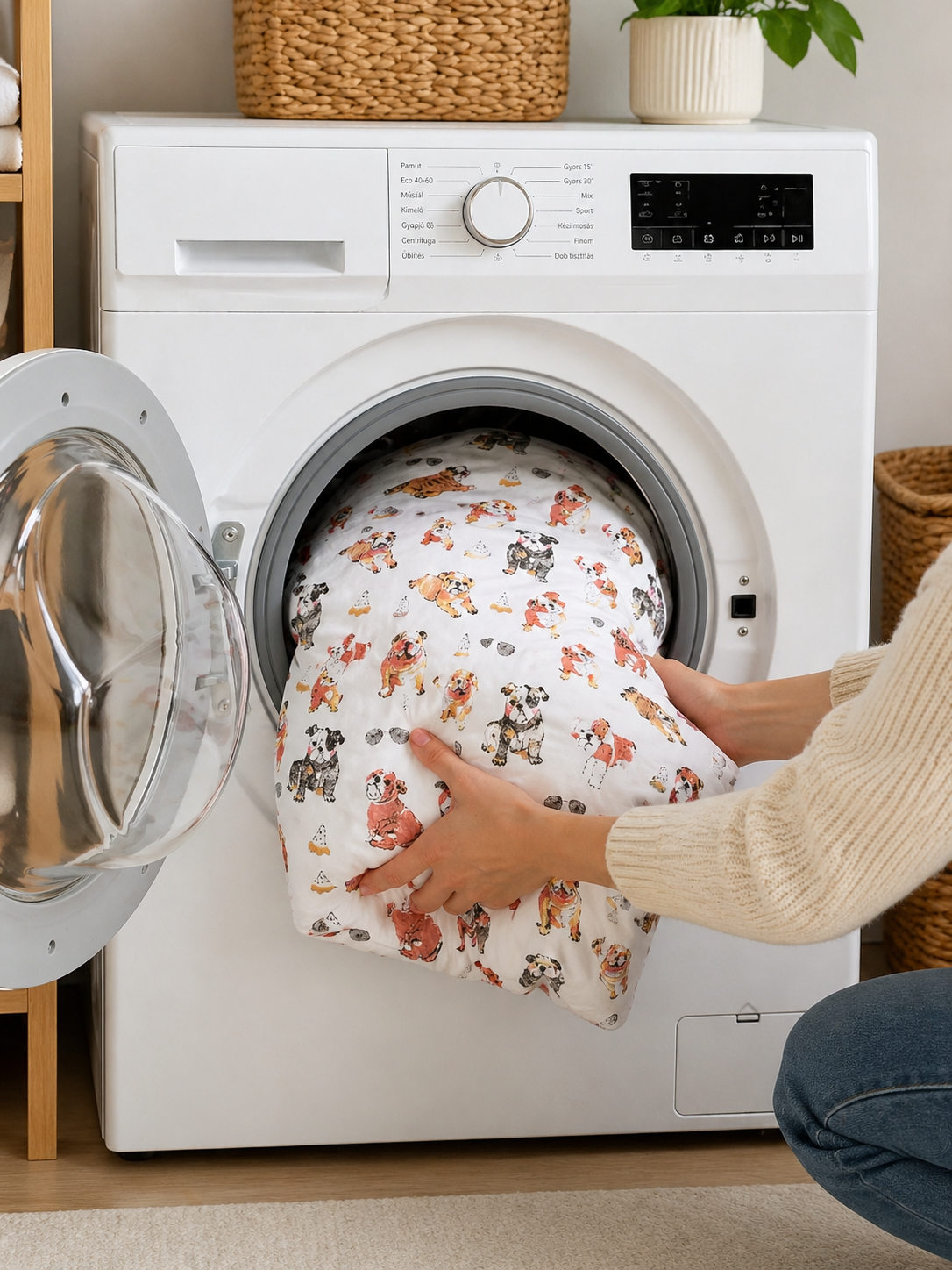 Az ágyneműhuzatokat kifordítva, színkímélő mosóporral, 40 C°- on, más textíliáktól elkülönülve mossuk.